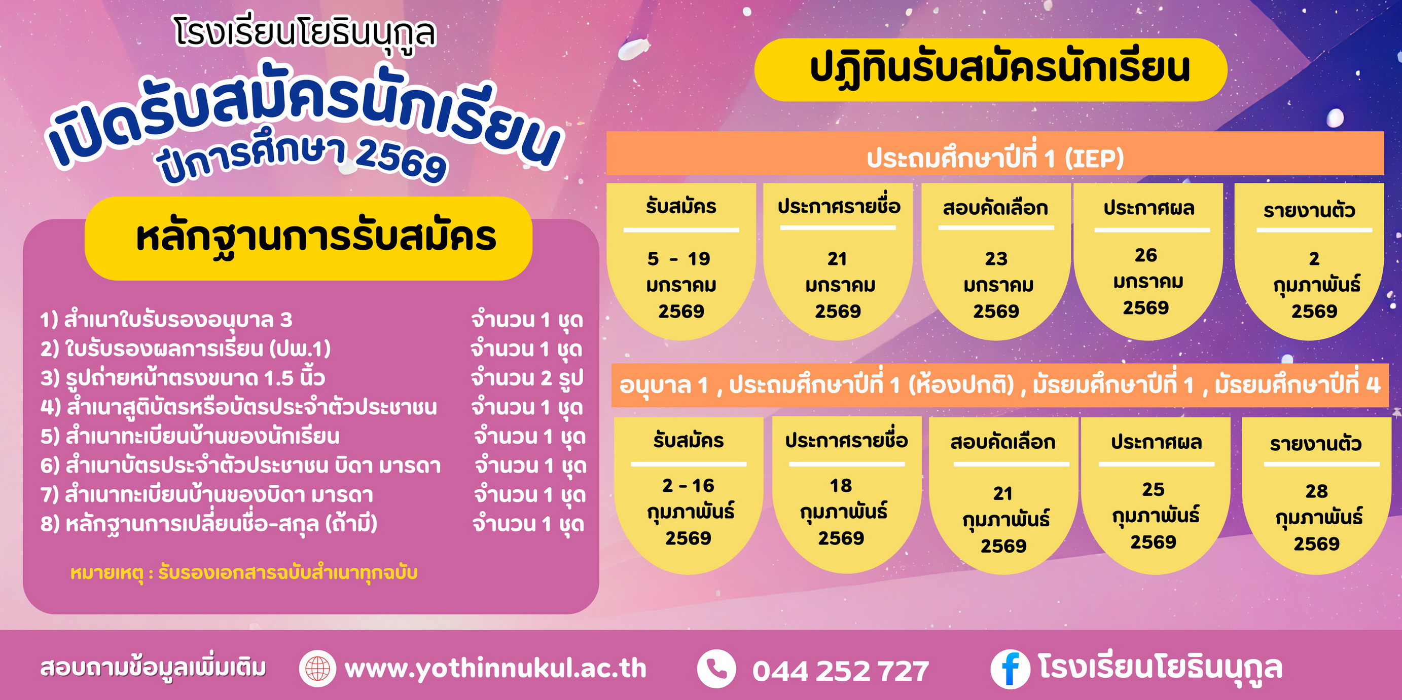Yothinnukul School’s Announcement List of Candidates Eligible for Employment as a Temporary full time Foreign Teacher (1 position) 15 ธ.ค. 66