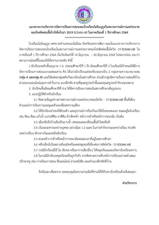 การจัดการเรียนการสอนช่วงวันที่ 14 มิถุนายน ถึง 30 มิถุนายน 2564 แนวการบริหารการจัดการเรียนการสอนช่วงวันที่ 14 มิถุนายน ถึง 30 มิถุนายน 2564